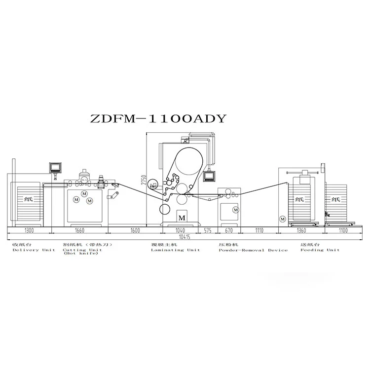 3. Единица за ламинирање: Автоматско јадро на машината за ламинирање со прашок за отстранување на топол нож за рамка од леано железо и електромагнетен систем за греење, обезбедувајќи стабилен притисок и точна температура, е основната гаранција за ефектот на облогата.
