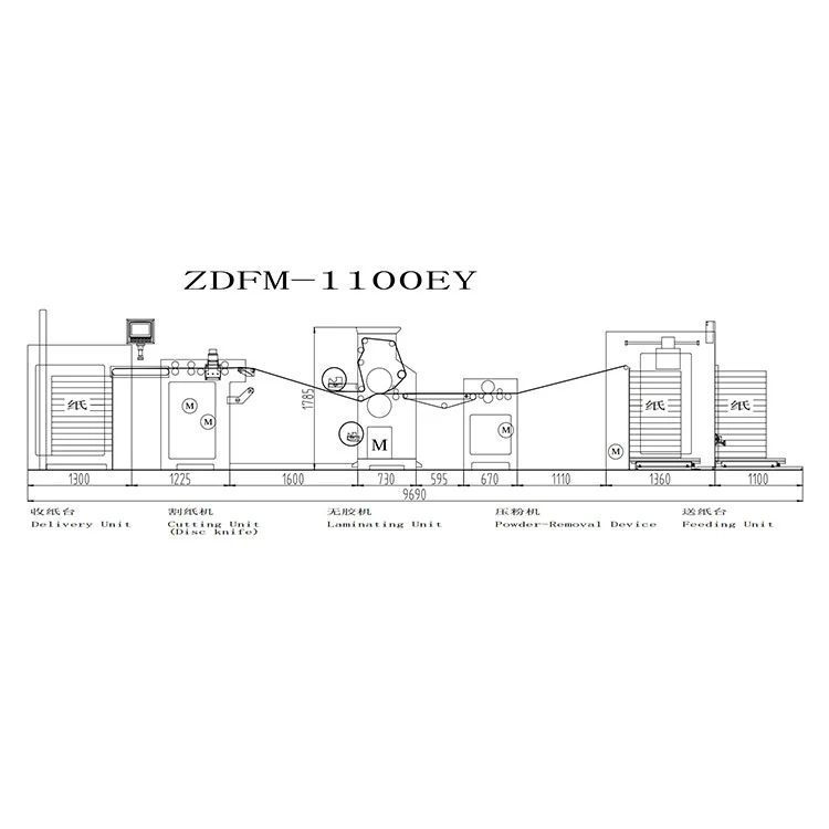 ZDFM-EY Машината за ламинирање со предобложување со термички филм со отстранување на прав од фабриката Хонгчианг ја реализира процесната интеграција на „чист третман“ и „ефикасна рекомбинација“. И покрај тоа што ги одржува предностите на поедноставената структура, екстремно ниската потрошувачка на енергија (вкупна моќност 32 KW) и брзото производство на предобложувач, тој ја надминува единствената пречка на процесот на предобложување во највисоките апликации преку претходно отстранување на прав.